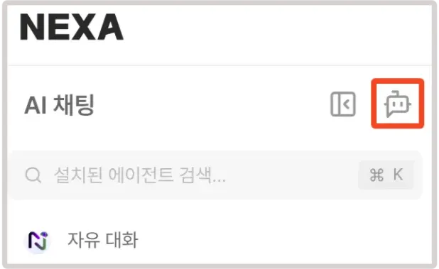 좌측 세션 목록 > 에이전트 목록의 더보기(⋮) 아이콘을 클릭하고, "새 에이전트"를 선택합니다.